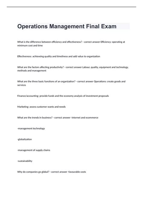 GKL - Read Operations management final exam questions and answer Epub BookBoon